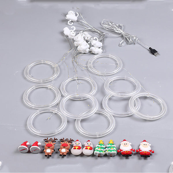 Beleuchteter Ring + Vorhang-Lichterketten + Weihnachts-Cartoon-Ornament-Spielzeug