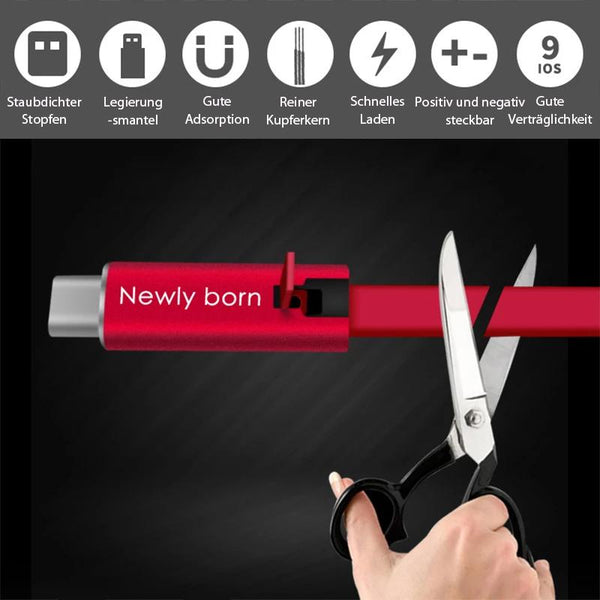 Das Kabelgehäuse ist robust und langlebig, der Datenkopf hat eine starke Adsorptionskraft und das Telefon lässt sich nicht leicht fallen lassen.