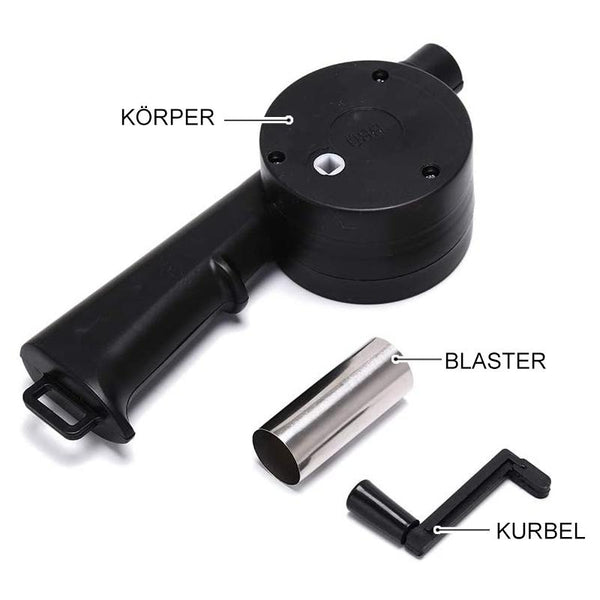 • Einfach den Griff durchdrehen und die interne Turbine bläst die Luft aus.