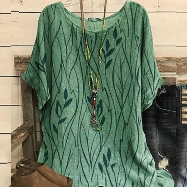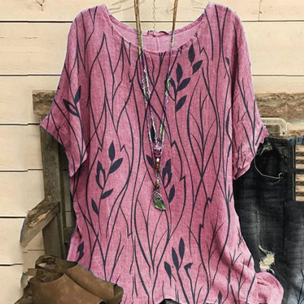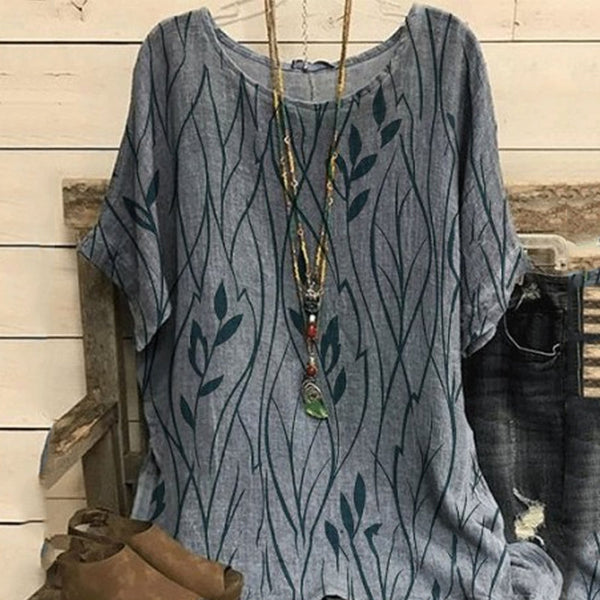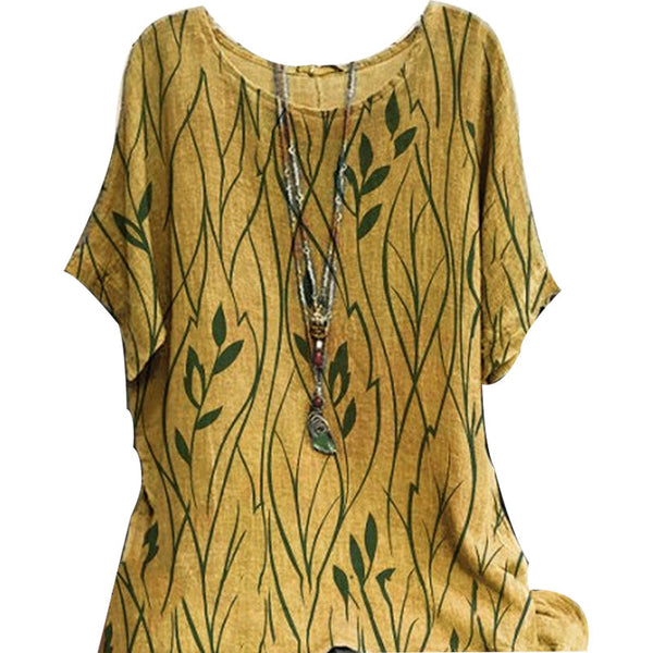 • Paket: 1 * Damen Lässiges Rundhals-T-Shirt aus Baumwolle und Leinen