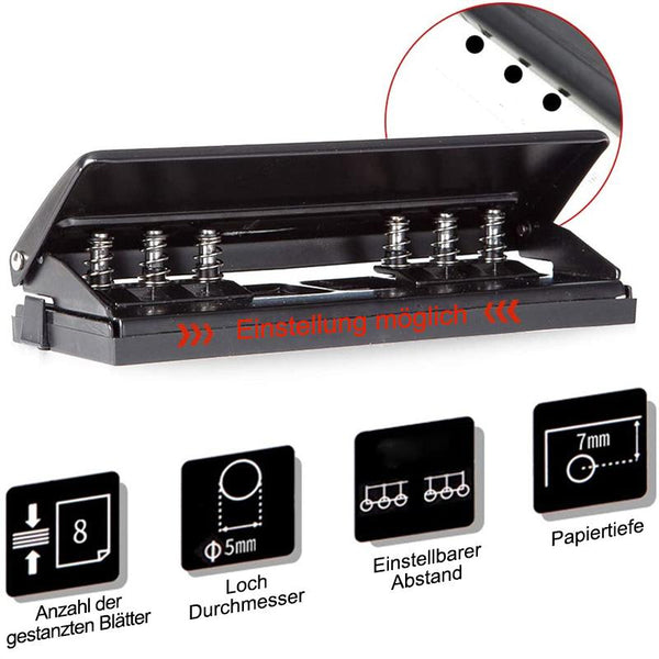 • Kapazität: Stanzt bis zu 8 Blatt mit Löchern von 5 mm Durchmesser.
