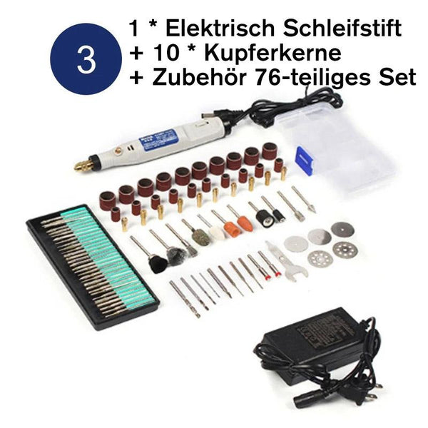 - 76-teiliges Set: 1 * Elektrisch verstellbarer Schleifstift + 10 * Kupferkerne + Zubehör 76-teiliges Set