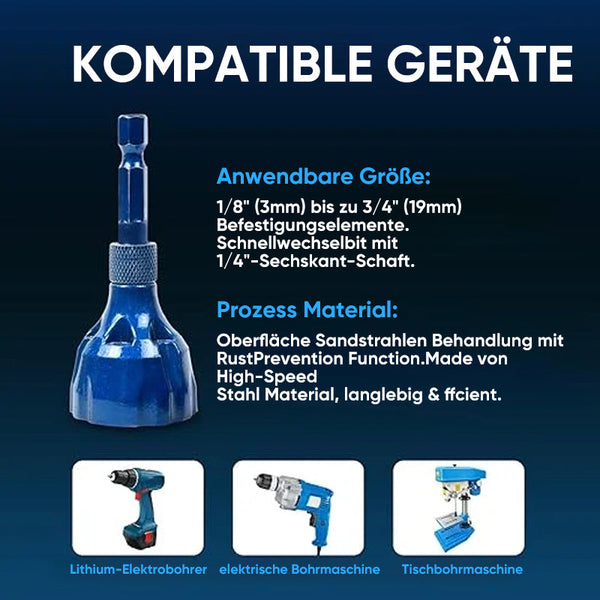 • 【Einfach zu verwenden】 Schlagen Sie es schnell in Ihr Bohrfutter ein, verwenden Sie dabei die richtige Geschwindigkeit und den richtigen Vorschub. Bohren Sie mit 0–400 U/min und üben Sie dann leichten Druck aus, um den Grat zu entfernen. 1/4-Zoll-Sechskantschaft mit Schnellverschluss-Design, passend für die meisten Bohrmaschinen, einschließlich Lithium-Ionen-Bohrmaschinen/Handbohrmaschinen/Tischbohrmaschinen.