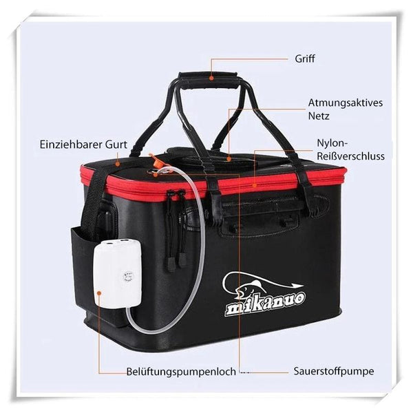 • Professionelles Design. Das Top-Cover-Mesh-Taschen-Design, die Frischluftzirkulation, lebende Köder und Fische können am Leben bleiben