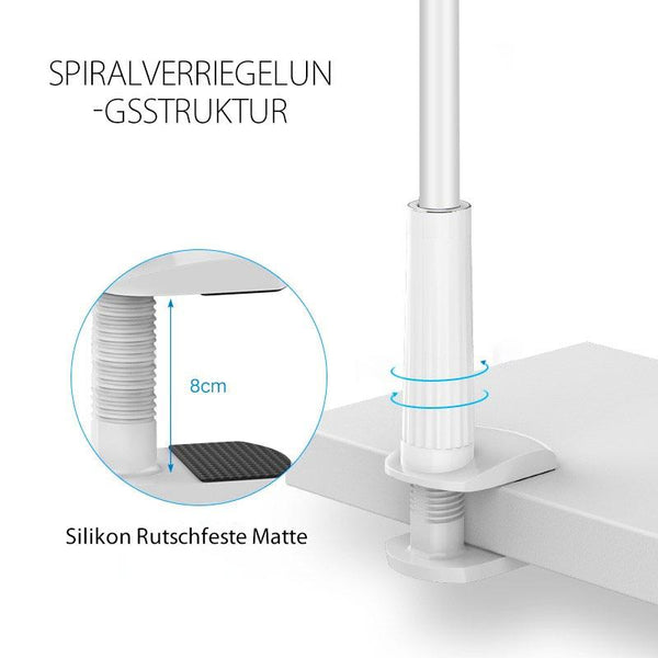 Die große Basis für eine stabile Montage ohne Vibrationen, ein fester und biegsamer Arm sichert Ihr Smartphone, iPad oder Tablet und andere elektronische Geräte fest, um zu verhindern, dass das Gerät herunterfällt oder sich bewegt.