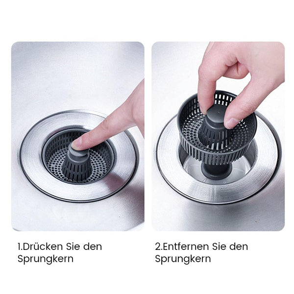 🥒Der im Abfluss eingebettete Korb kann herausgezogen werden, um zu verhindern, dass der Abfluss versehentlich durch Haare und Küchenabfälle verstopft wird.