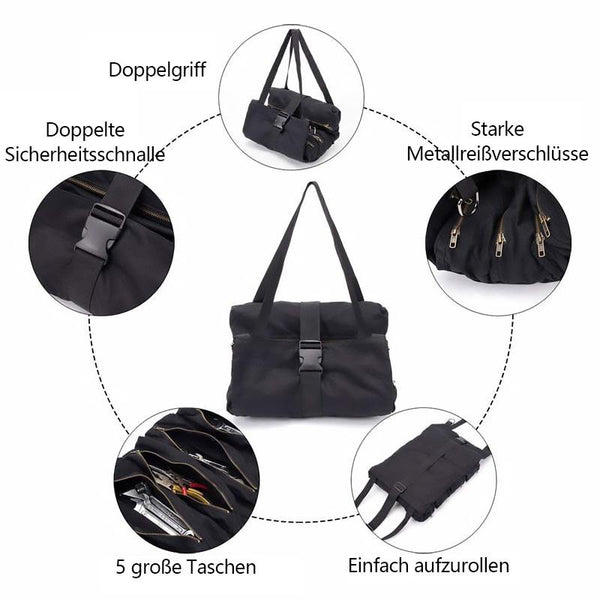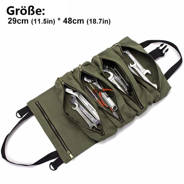 • Einfach zu verstauender Werkzeuge Aufbewahrungstasche: Aufrollbar zum einfachen Aufbewahren und Tragen, Reißverschlüsse und Schnallen zum sicheren Schließen.
