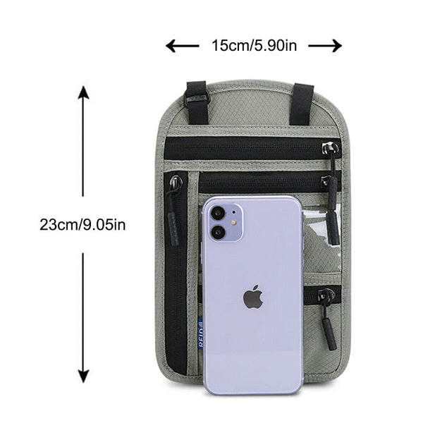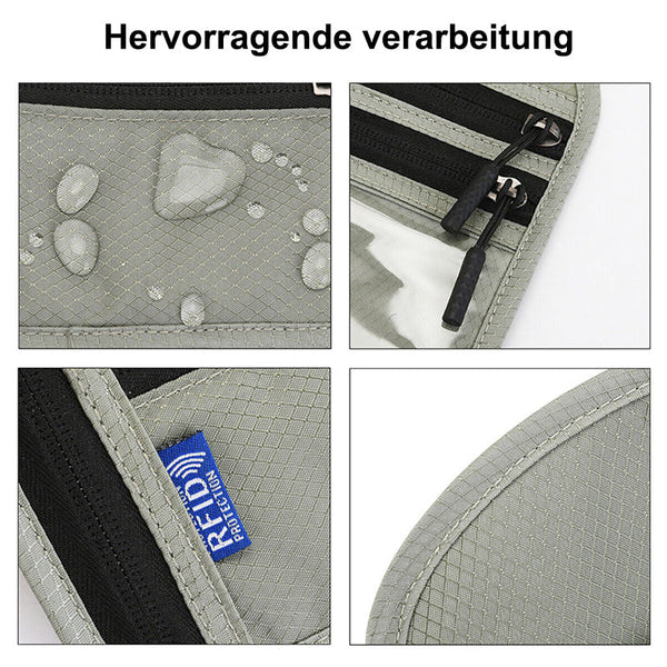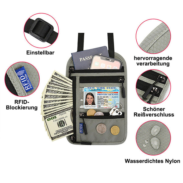 Reisehalstasche mit RFID-blockierendem Reisepasshalter