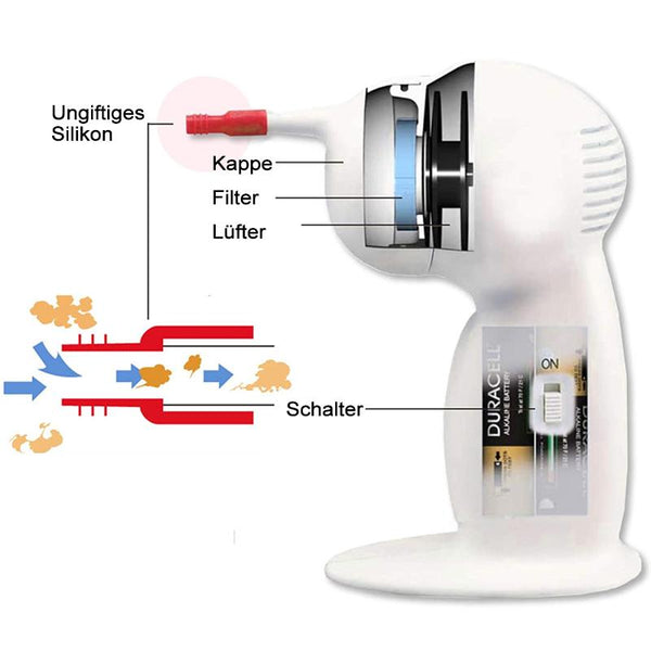 • Es kann länger genug sein, um den juckenden Teil Ihres Ohrs zu erreichen. Dies ist eine effizientere Operation als das Wattestäbchen. Hartnäckig am Ohr kann auch nach dem Absaugen sauber sein, wie ein Staubsauger. Die Saugkraft ist stark, klingt aber sehr leise.