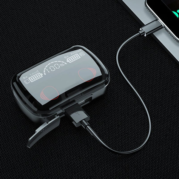 • LED-Bildschirm: Dieser Kopfhörer enthält einen LED-Bildschirm, der den Prozentsatz der Akkukapazität der beiden Ohrhörer anzeigen kann.