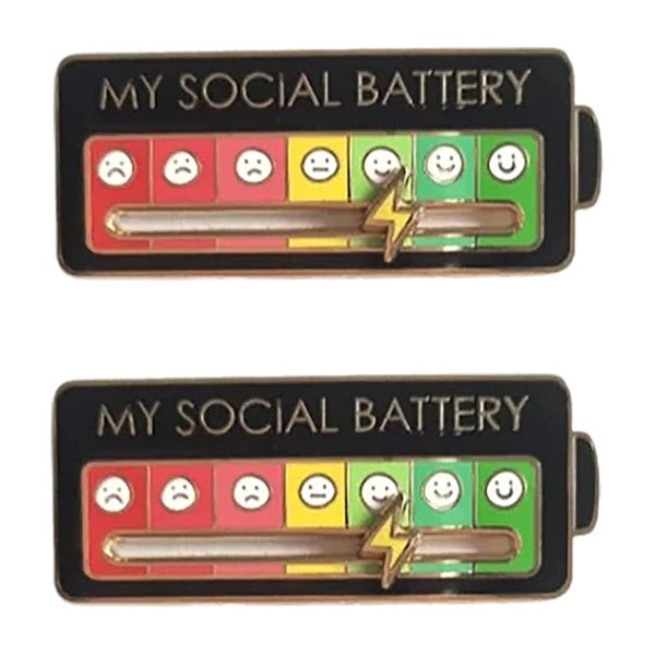 Die Idee zu der Stimmungsbatterie-Brosche entstand nach einem langen Arbeitstag, an dem ich viel zu erschöpft war, um mit irgendjemandem zu reden. Schieben Sie das Energiesymbol nach links und rechts über die Leiste, um Ihr soziales Energieniveau anzuzeigen! Perfekt für Introvertierte oder an Tagen, an denen Sie einfach zu müde zum Reden sind.
