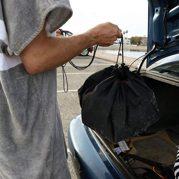 Das Ein- und Ausziehen Ihres Neoprenanzugs auf einem schmutzigen Parkplatz oder am Strand kann für Ihren Neoprenanzug eine Katastrophe bedeuten! Die Neoprenanzug-Tasche kann dazu beitragen, Neoprenanzüge, Badebekleidung, Kleidung oder Ihren Neoprenanzug-Wechselmantel vor Schmutz oder Sand zu schützen.