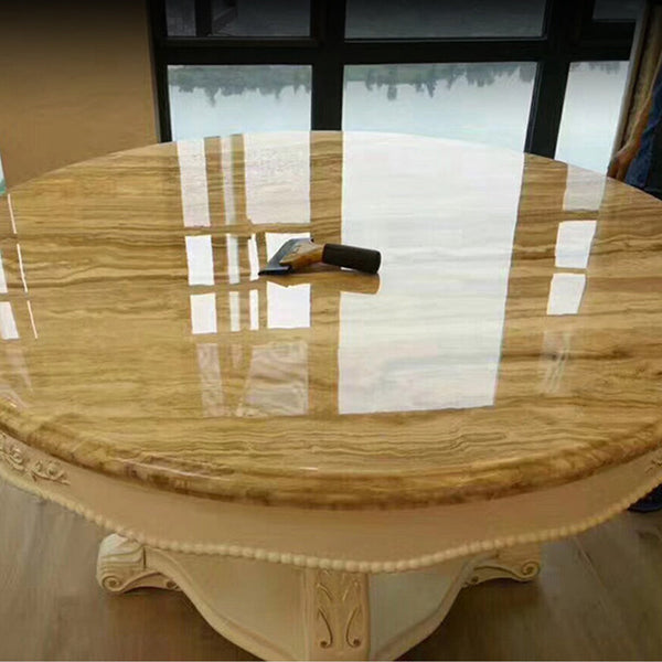 • Der Tischdeckenschutz aus klarem Vinyl lässt die Schönheit Ihres Tisches aus Naturholz oder feinem Leinen durchscheinen und kann leicht in die Größe geschnitten werden, die Sie zum Abdecken anderer Dinge benötigen.