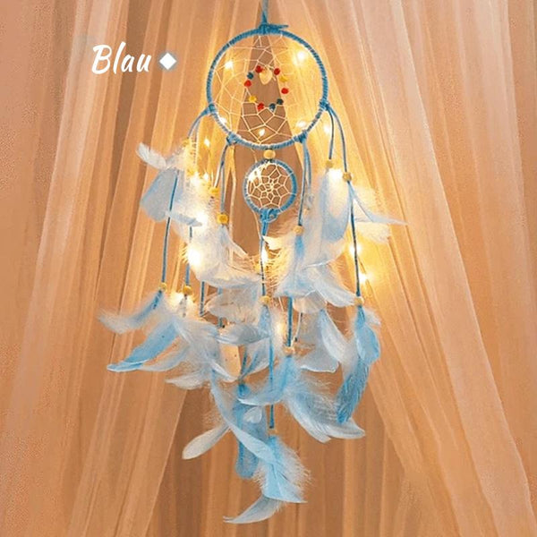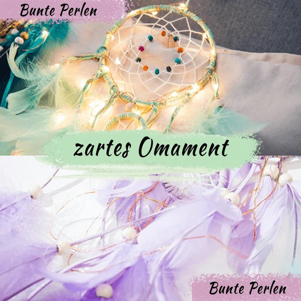 Angebracht mit warmweißen LED-Lichtern wie ein feenhafter, kraftvoller Traumfänger. Hängen Sie es auf, um eine ruhige, süße Atmosphäre zu schaffen und Ihr Zimmer zu beleuchten!