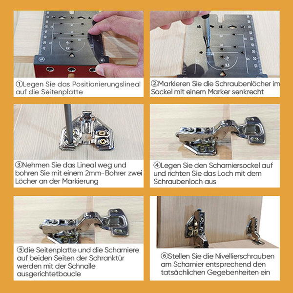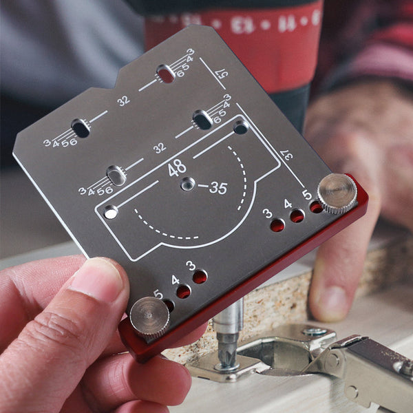 • 【Einfache Bedienung】Das Bohren ist einfach mit der 35mm Scharnierbohrschablone. Einstellbare Skalen für 3mm, 4mm, 5mm und 6mm Scharnier Offsets machen es einfach, Ihnen zu helfen, Ihre Bohrposition zu wählen. Verwenden Sie die Bohrmaschine, um den Bohrer zu befestigen, damit Sie einfach und schnell bohren können. Die Hilfslöcher auf beiden Seiten ermöglichen ein einfaches Eindrehen der Schrauben in die Holzplatte.