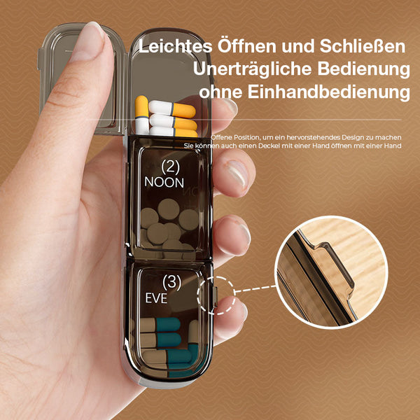 • EINFACH ZU BENUTZEN: Verbesserter konventioneller Schaltermodus, einhändige Bedienung, leicht zu öffnen für ältere Menschen oder Patienten, aber die Medikamentenbox wird sich nicht von selbst öffnen und herunterfallen.