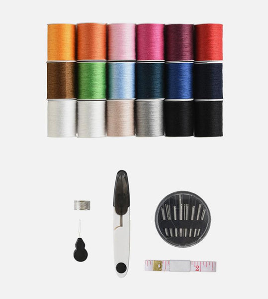 • Paket: 18 Farben Nähgarn, 24 Nadeln unterschiedlicher Länge, einen Fingerhut, ein Lineal und eine Schere, ein Nadeleinfädler