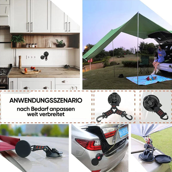 • Praktisch: Der Sauganker ist eine bessere Möglichkeit, fast alles zu sichern. Machen Sie sich keine Sorgen mehr über Ladungen, die nicht sicher gesichert sind. Befestigen Sie Zelte und Planen auch an Autos und Lastwagen, um das Camping mit dem Auto zu erleichtern.