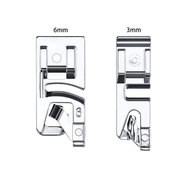 2 verschiedene Größen: Dieses Nähfuß-Kit zum Nähen mit schmalem Saum enthält 2 Größen, mit denen Sie mühelos schöne gerollte Säume auf leichtem Stoff herstellen können