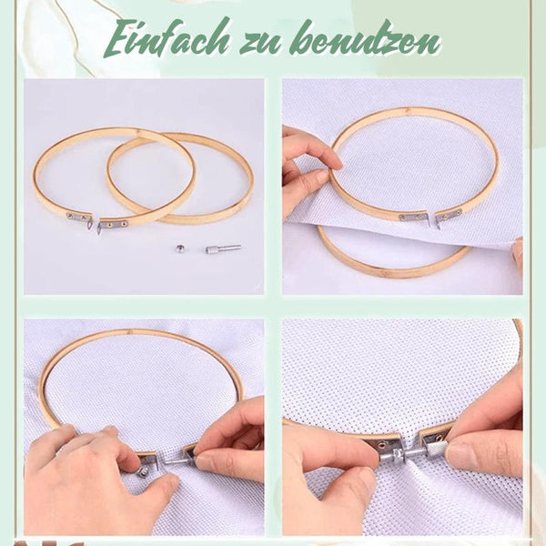 Die Stickrahmen haben eine Einstellschraube aus Messing, die Sie bei Bedarf festziehen können, um den Stoff so fest wie eine Trommel zu halten