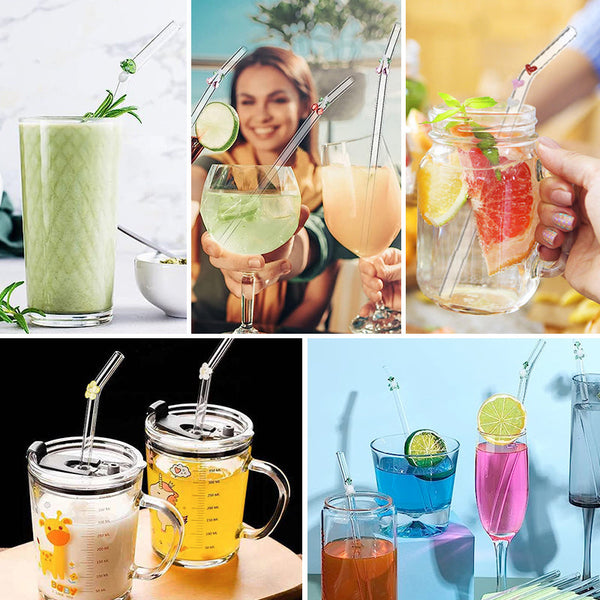 • Paket: 6 * Strohhalme aus farbigem Glas + 2 Bürsten
