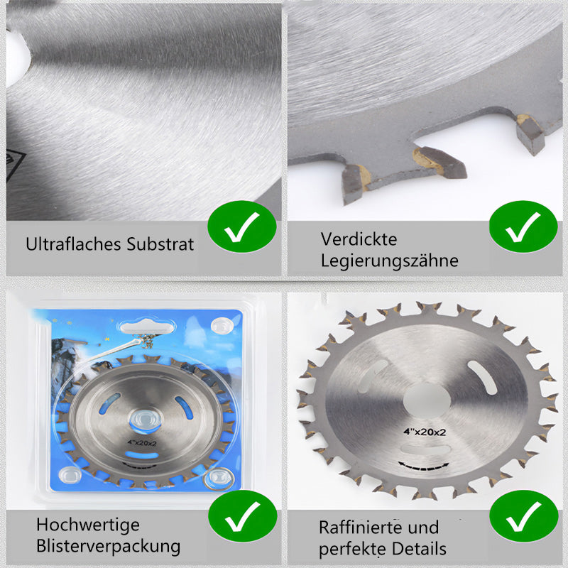 • Material: Runde Schneidklingen bestehen aus langlebigem, hochwertigem legiertem Stahl mit gehärteten und schärferen Hartmetallzähnen für eine effiziente Holzbearbeitung.