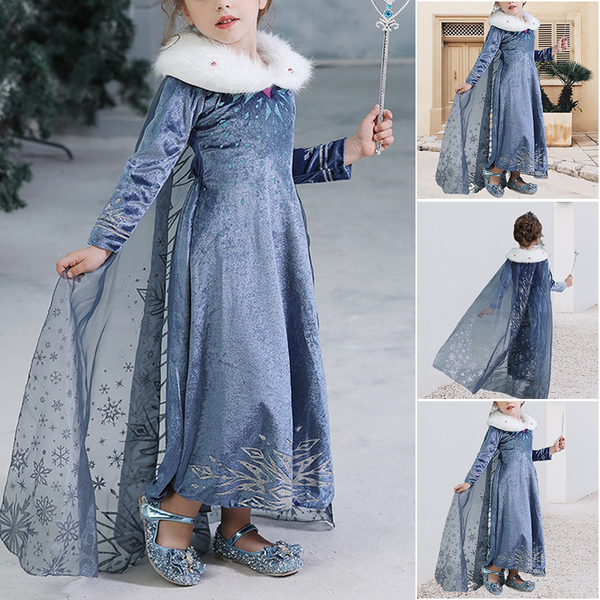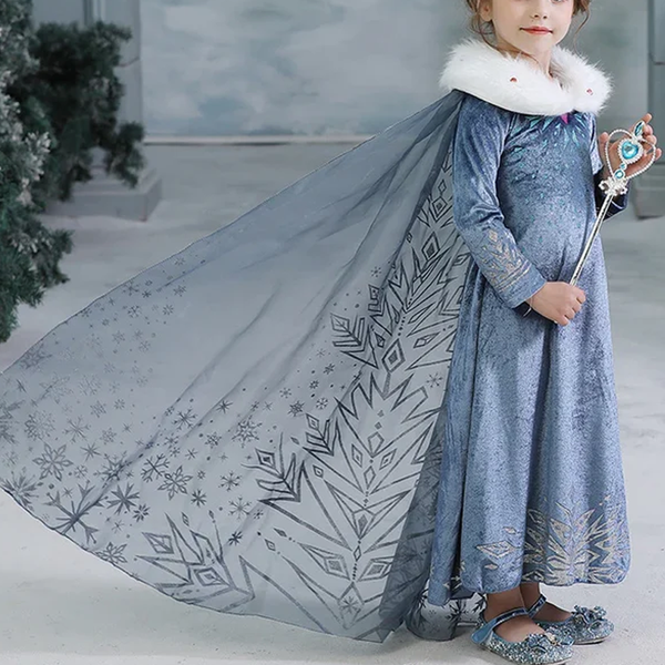 • ❄️Wunderschönes Design: Am ganzen Körper befinden sich zarte Eis- und Schneemuster, ein weißer, flauschiger Kragen mit einem prinzessinartigen Sinn für Luxus. Ein Prinzessinnenkleid, das kleine Prinzessinnen jeden Tag tragen möchten.