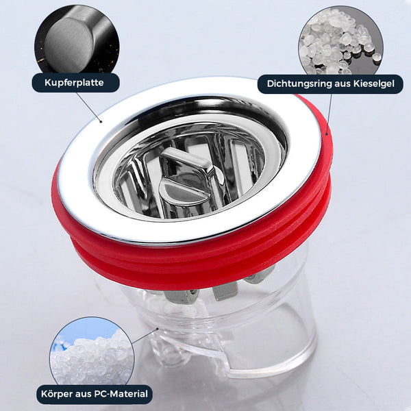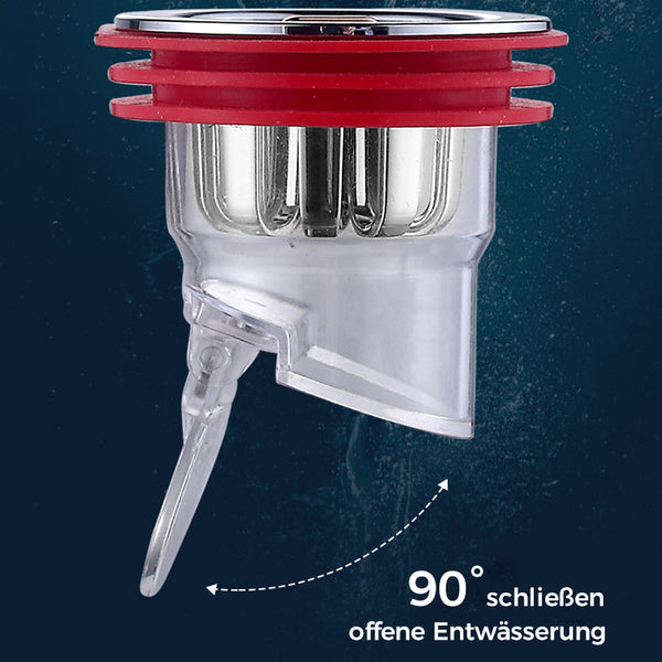 • Schnell ablassen, während Geruch, Insekten und Schmutz blockiert werden, selbst wenn eine große Menge Wasser freigesetzt wird, wird es nicht verstopft.