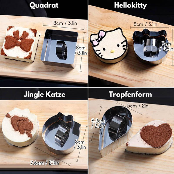 Sehr vielseitig: Geeignet für Gebäck, Zuckerguss, Kekse, Kekse, Sandwiches und mehr! Ideal zum Erstellen von Vorspeisen in Blumenform, Quadratform, Herzform, Kreisform und Dreiecksform, geformten Salaten, Kuchen, Mousse und Desserts.