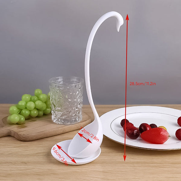 • Material: Hergestellt aus lebensmittelechtem Kunststoff. Der elegante Schwanen-Suppenlöffel mit Ständerdesign kann auf dem Esstisch stehen und lässt Ihren Esstisch anders aussehen.