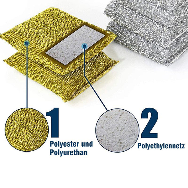 Suchen Sie einen wirksamen Küchenschwamm, der Fett und trockene Flecken reinigen kann, ohne die Glas-, Kunststoff-, Metall- und glatten Antihaftoberflächen zu beschädigen? Diese Geschirrwäscher bestehen aus kratzfesten Materien, damit Ihr Geschirr und Kochgeschirr so gut wie neu bleibt.