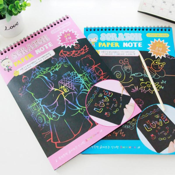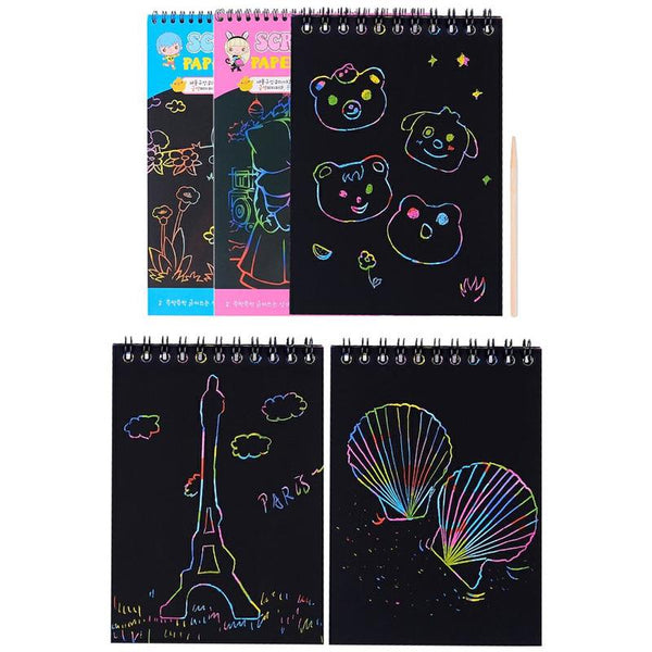 • 🌈Kratzen & enthĂŒllen- Verwenden Sie einfach die mitgelieferten Holzstifte, um den schwarzen Film einfach abzukratzen und die wunderschönen Regenbogenfarben zu enthĂŒllen!