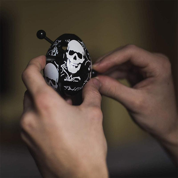• Das Spielzeug besteht aus zwei Teilen: einem eiförmigen Körper und einem Zauberstab mit einer kleinen Kugel an jedem Ende