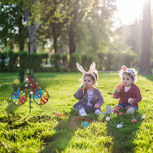 Platzieren Sie es im Garten, im Blumenbeet, im Blumentopf oder an einem luftigen Ort, während die hellen Stoffstreifen, die als Speichen der Räder dienen, einen schillernden Regenbogen in Bewegung erzeugen, während sie sich im Wind drehen.