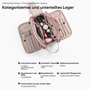 • Sie brauchen eine gut organisierte Kosmetiktasche mit großem Fassungsvermögen, in der Sie alle Ihre geliebten Make-up-Produkte an ihrem Platz unterbringen und auf einen Blick finden können.