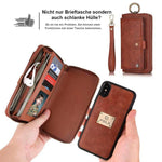 Ausgestattet mit einem umfangreichen Kartenfach vorne und einer hochwertigen Geldbörse mit Reißverschluss hinten mit einem passenden abnehmbaren Armband.Die Brieftasche bietet Platz für mehrere Banknoten- und Kartenfächer sowie ein Münzfach mit Reißverschluss. Es passt sogar auf einen Reisepass in Standardgröße (3,5 "x 5")!