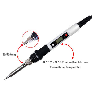• Das Design der Digitalanzeige macht es benutzerfreundlicher und kann Daten einfach anzeigen. Mit 2 Tasten und Wärmeableitungsfunktionen ist das LCD-Thermostat-Schweißeisen einfach und einfach