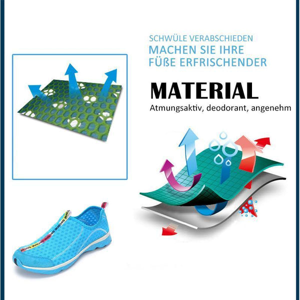 • Einfache Entwässerung: Großes Mesh-Netz und atmungsaktives Drainageloch an der Sohle für zeitnahe Drainage