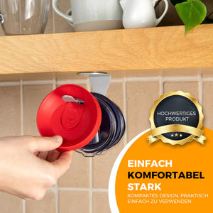 • Universelle Passform für den Einsatz unter dem Schrank: Genial zugeschnitten, um Becherdeckel jeder Größe aufzunehmen. Sein horizontales Stapeldesign unter Schränken oder Regalen optimiert den Platz und ermöglicht eine einfache Organisation und Lagerung von Deckeln unterschiedlicher Größe.