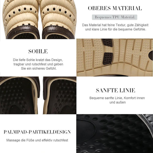 • Verschleißfest: Die Materien der Schuhe sind TPU und Gummi. Sie haben auch gute Qualität und sind verschleißfest. So kann man die Pantoffeln sehr lange Zeit benutzen.
