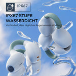 • 【Ergonomisches Design & komfortabel】Bone Conduction Bluetooth Headset, leichtes Design bringt Ihnen eine ausgezeichnete Trainingserfahrung, ob im Fitnessstudio oder im Freien, geeignet für Laufen, Radfahren und andere Sportarten