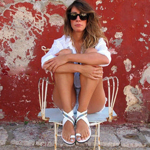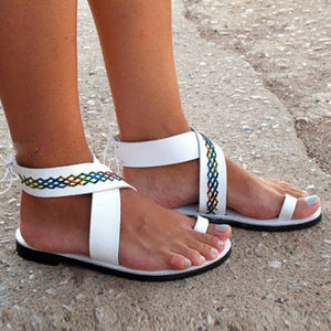 Böhmische flache Knöchelriemen Peep Toe Strand lässige Sandalen