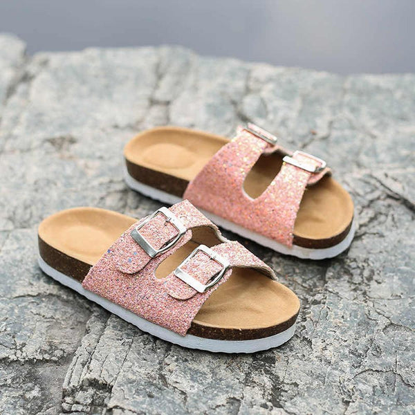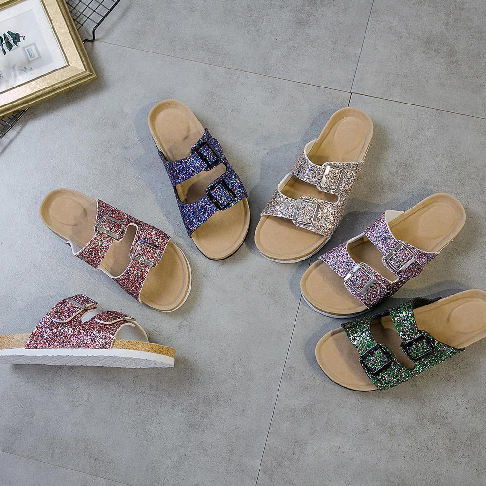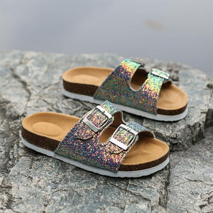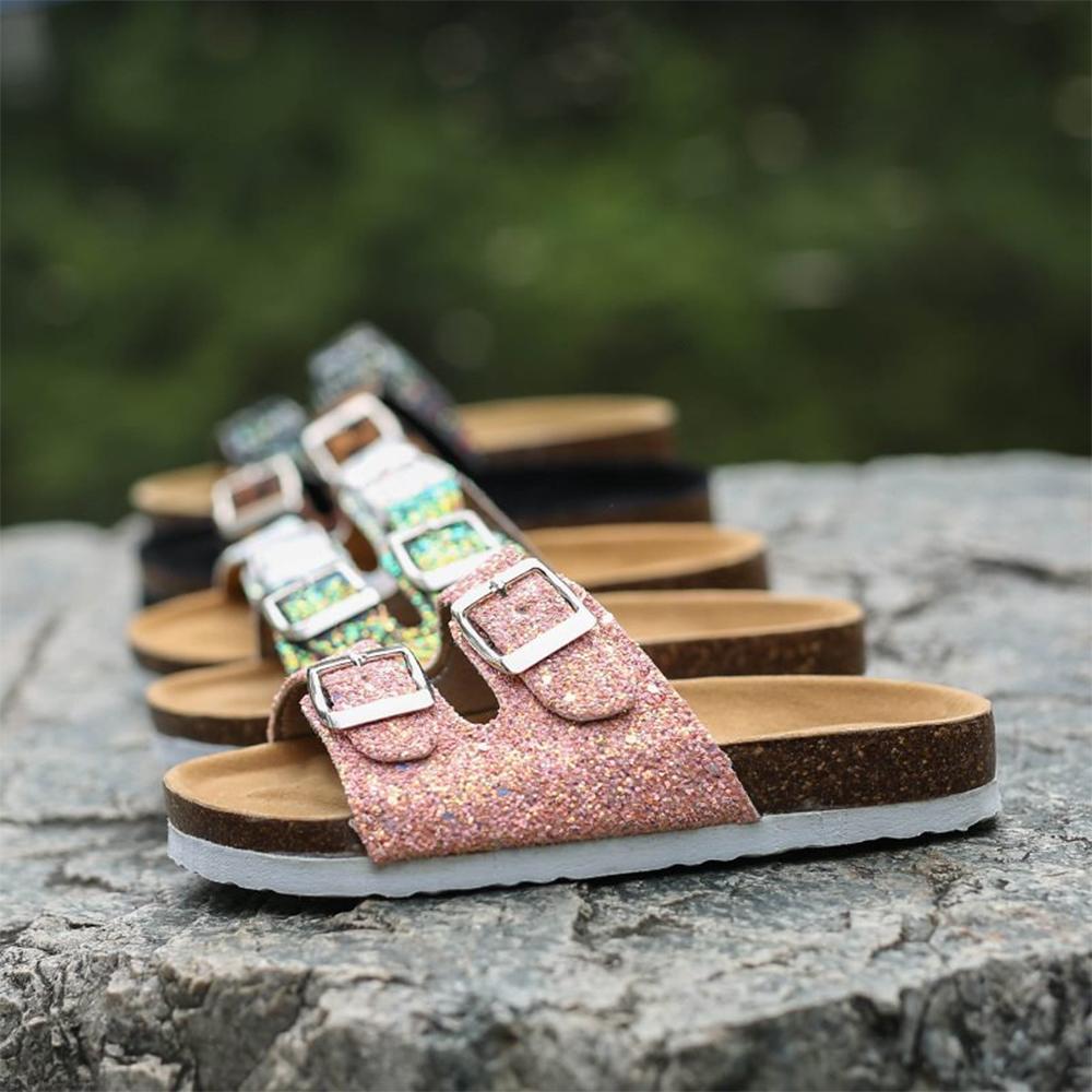 💃 Die schönsten Sandalen aus Kunstleder. Sie haben 2 breite Riemen über dem Fuß mit Schnallen und Pailletten.