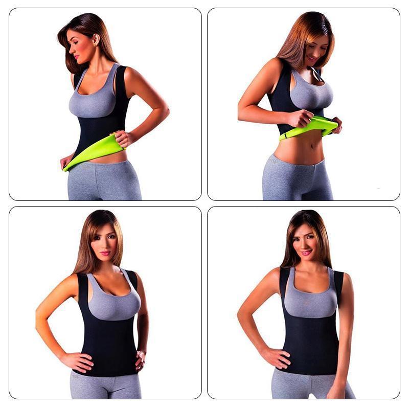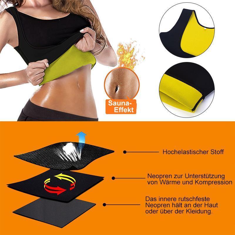 Der Damen Thermo Schweiß Top besteht aus Hightech Neopower Material, das die Körpertemperatur erhöht, wenn es in Kontakt mit der Haut kommt. Es ist perfekt zum Trainieren, für den normalen Alltag oder für jede andere körperliche Aktivität. Seine einzigartigen Fasern produzieren höheren Druck auf Bauch, Taille, Rücken und den Rest des Oberkörpers, sodass man mehr schwitzt.