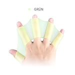 Das hydrodynamische Design bietet Ihnen vernetzte Finger. Sie erhöhen den Widerstand, bauen Kraft und Stärke auf und ermöglichen es Ihnen, viel schneller zu schwimmen, genau wie ein Frosch oder ein Otter!
