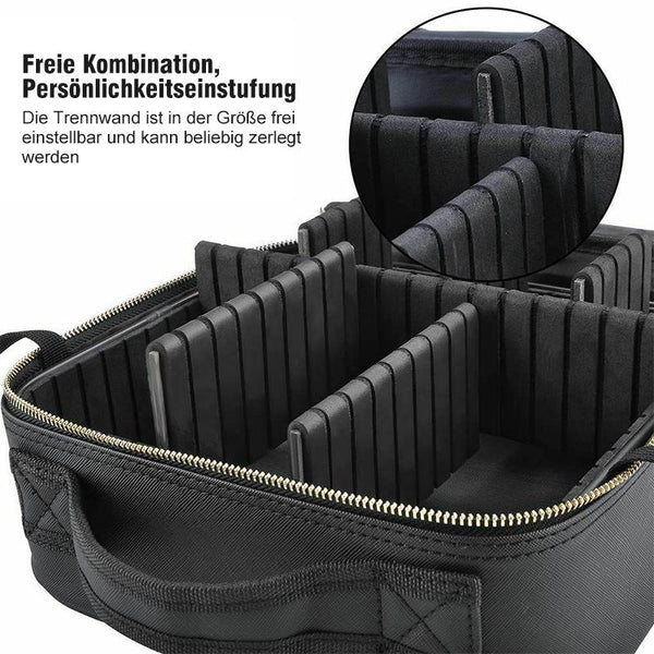 Die Kosmetiktasche besteht aus hochwertigem Nylongewebe und ist dadurch wasserdicht, sehr langlebig und leichter zu tragen als andere professionelle Kosmetiktaschen.