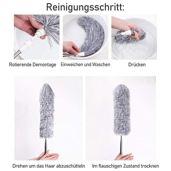 Leicht zu reinigen, ohne Flusen waschbar: Verwenden Sie Fasermaterial, schnelle Reinigung, einfach und leicht, keine Flusen. Es ist rostfrei, robust und leicht und eignet sich zum Reinigen von Staub auf Haushaltsgeräten und Decken, Jalousien, Deckenventilatoren, Dekorationen und Bücherschränken.