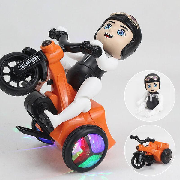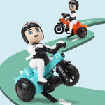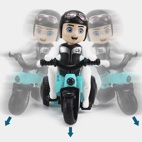 • [ 360° DREHBAR ] Der kleine Junge sitzt auf dem Dreirad und arbeitet hart, um in die Pedale zu treten. Bei einer bestimmten Entfernung wird das Dreirad angehoben und dann um 360 ° gedreht.