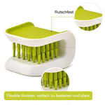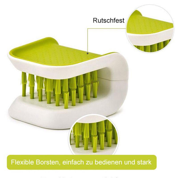 Leicht zu reinigen - Die Klingenbürste ist leicht zu reinigen. Waschen Sie die Bürste entweder in der Spülmaschine oder in Seifenwasser. Sie ist sauberer als Schwämme und trocknet schneller.