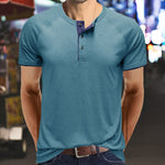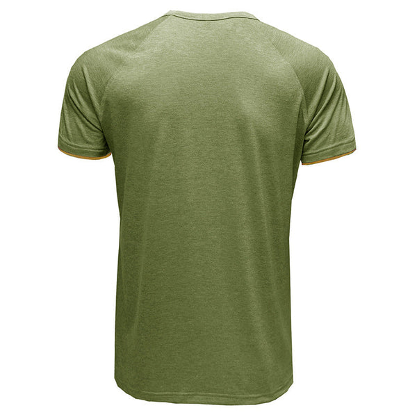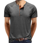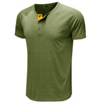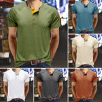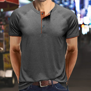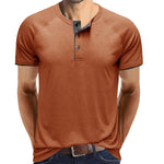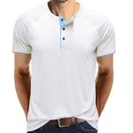 • 【Design】 Dieses T-Shirt hat kurze Ärmel, einen Rundhalsausschnitt und ein klassisches Knopfdesign. Lässiges Herren-T-Shirt mit Kontrastbesatz an Ausschnitt und Ärmeln ist einzigartig und zeitlos.